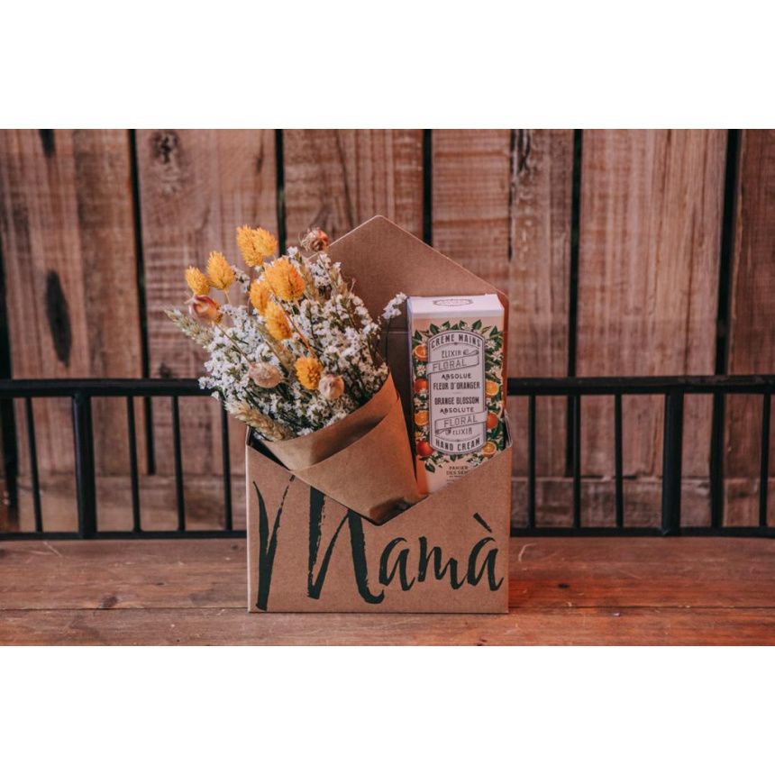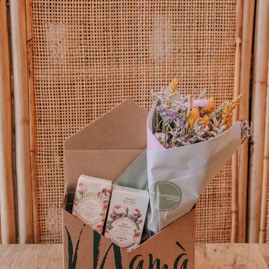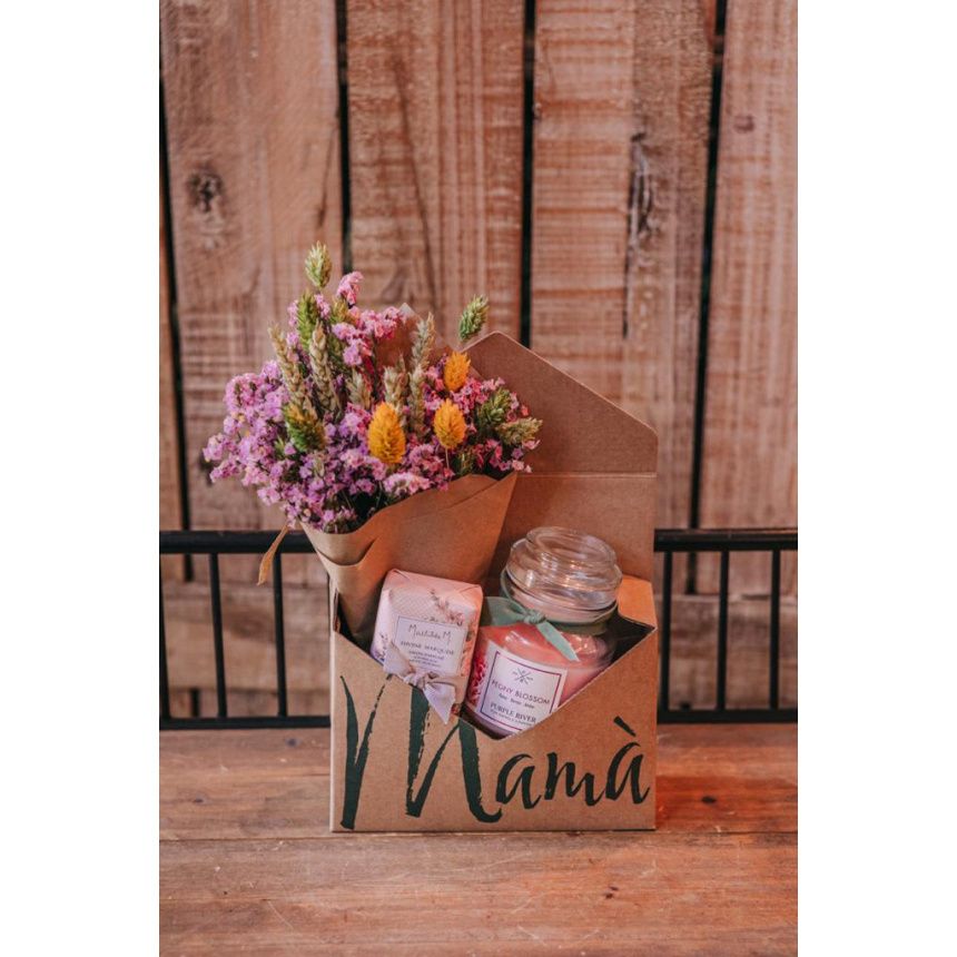 Sobre Mamá, con flor seca, crema y jabón de peonía