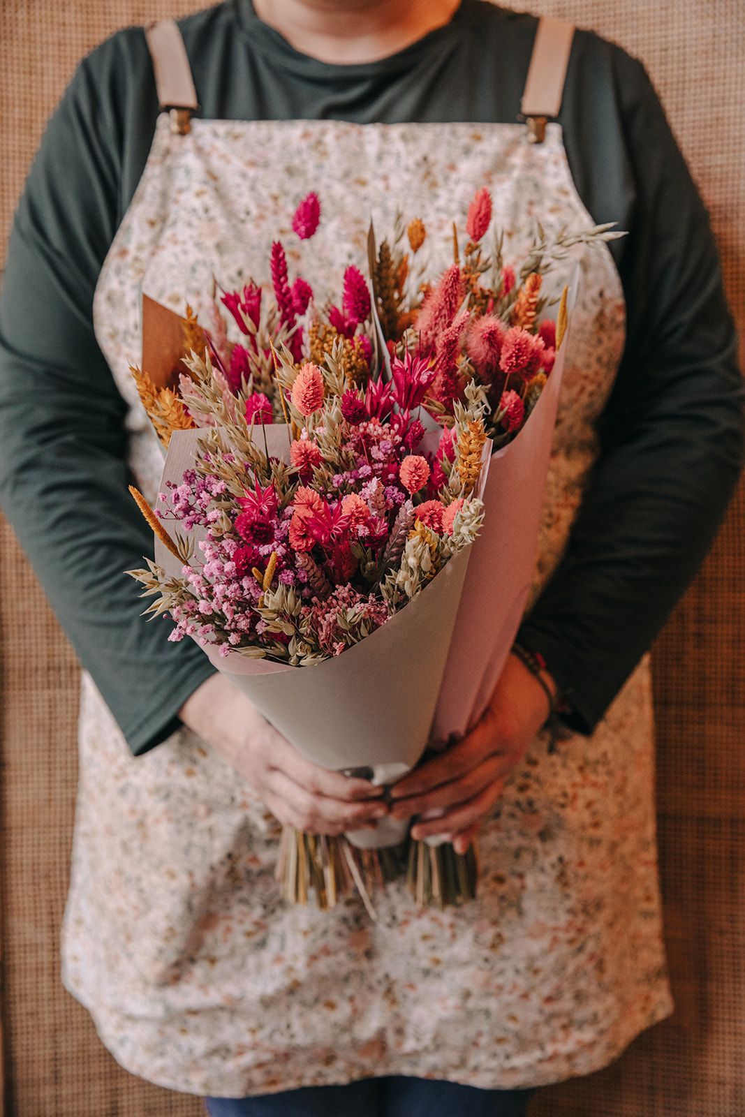 Cada ramito es único y puede presentar pequeñas variaciones según la disponibilidad de las flores, manteniendo siempre una armonía de color y estilo delicado.